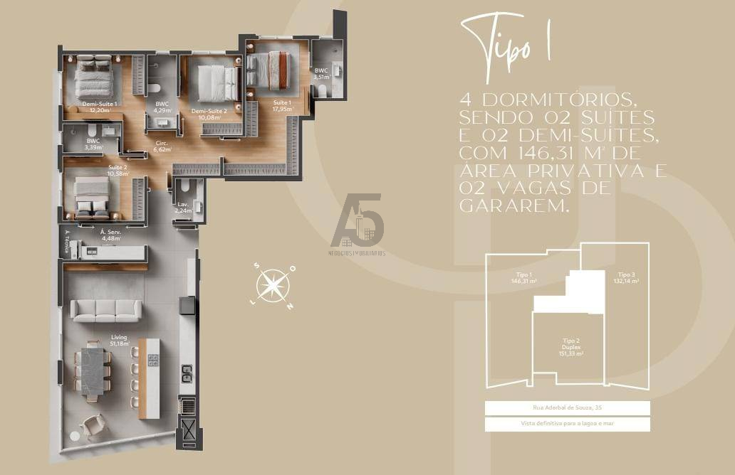 Tipo1 4 dormitórios - 2 suítes / 2 demi-suítes / 2 vagas 146m²