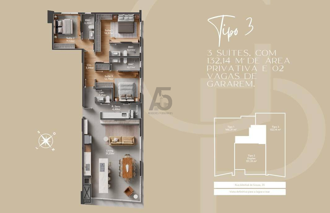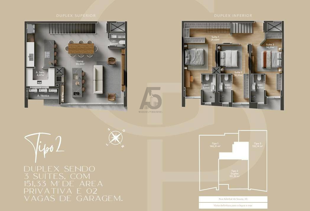 Tipo2 Duplex 3 suítes / 2 vagas 151m²