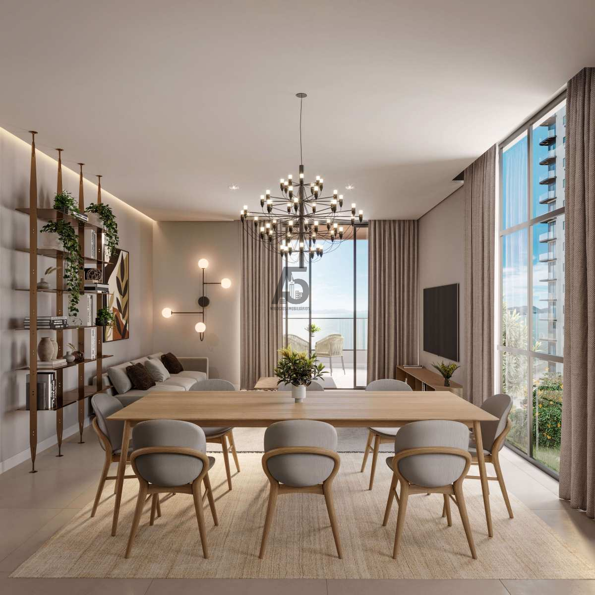 Living espaçoso com grandes aberturas