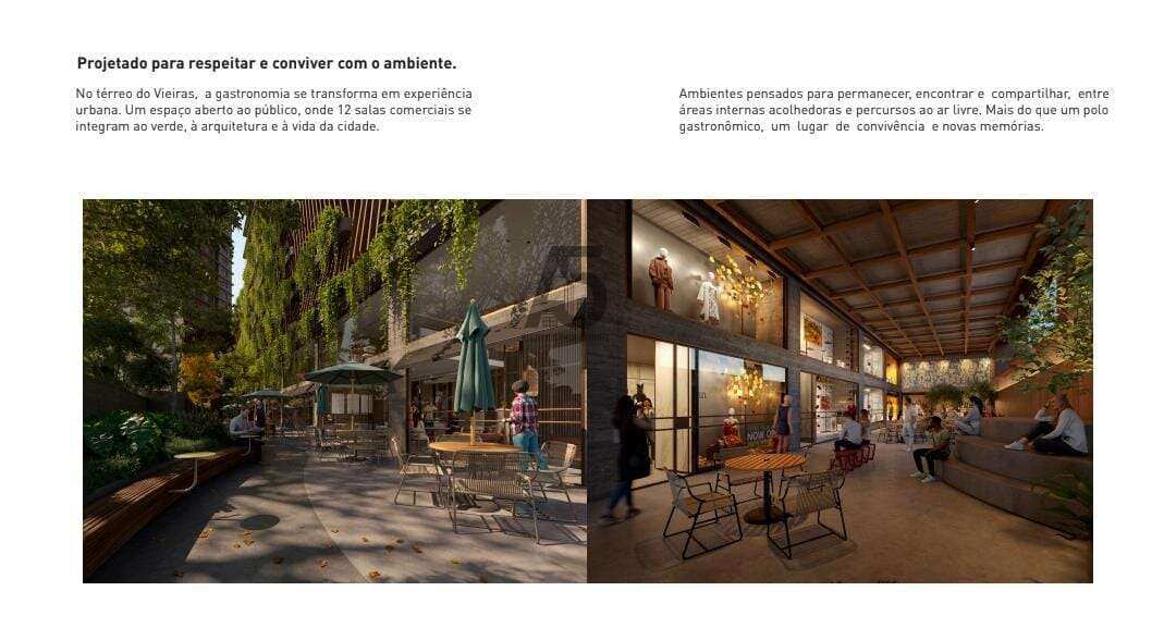 O térreo do empreendimento contará com um espaço urbano aberto ao público, com 12 salas comerciais, voltadas principalmente para experiências gastronômicas.
