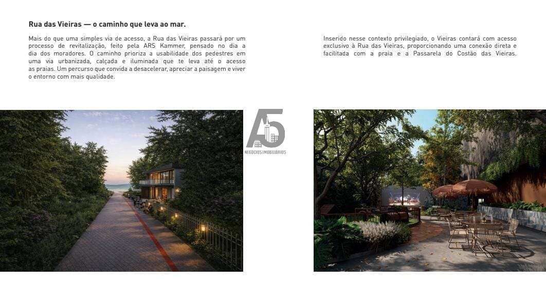 Um dos grandes diferenciais do empreendimento será a revitalização da Rua das Vieiras, realizada pela própria incorporadora, priorizando mobilidade e experiência urbana.