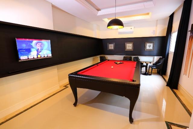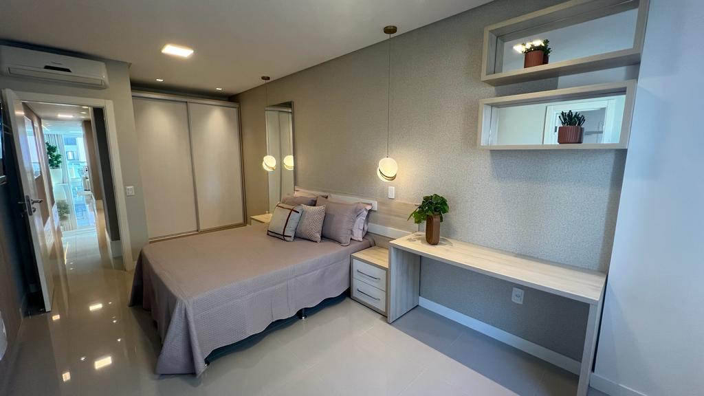 03 suítes (sendo 01 máster)Finamente mobiliadoSala e sacada integrada com churrasqueiraÁrea privativa de 134mVaga de garagem B2 para 5 carrosLazerLavabocozinha sob medidaárea de serviçosalão de festasacademiasaunapiscina adulto e infantilsala de jogos